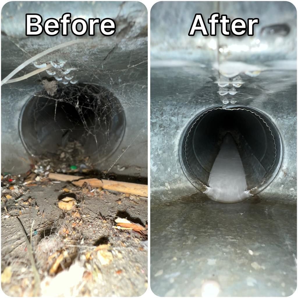 The after photo shows the same air duct after our professional air duct cleaning service. As you can see, all the dirt, dust, debris, and mold have been removed, leaving you with clean, fresh air to breathe. You’ll notice a significant improvement in the air quality of your home, and you may even see a reduction in your energy bills thanks to the improved efficiency of your HVAC system.